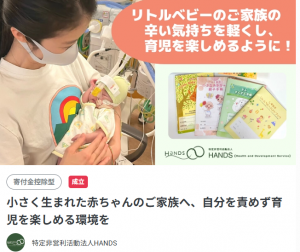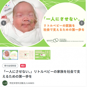・HANDSへの寄付(リトルベビーの活動を指定して寄付)クレジットカードからの寄付はこちらから