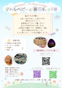 • 活動形式:現在はコロナのためグループLINEでの情報共有、オンラインでの交流会、リトルベビーハンドブック導入に向けた活動