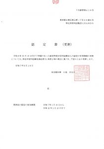 所轄庁(HANDSの場合は東京都)が、一定の基準を満たしていると認めたNPO法人に対して与える特別な認定です。